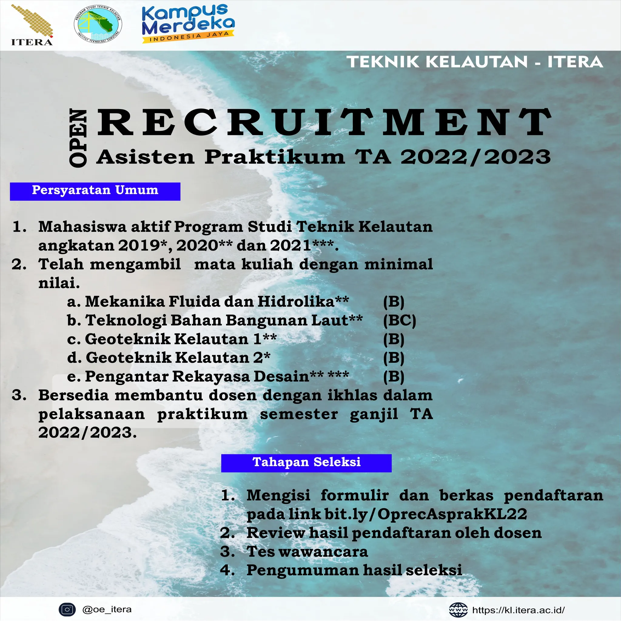 Silahkan sampaikan saran/kritik/apresiasi terhadap Prodik KL ITERA. Setiap pesan yang masuk, akan ditindaklanjuti untuk perbaikan berkelanjutan prodi. Terima Kasih